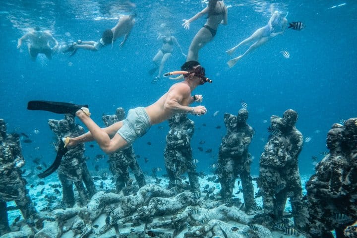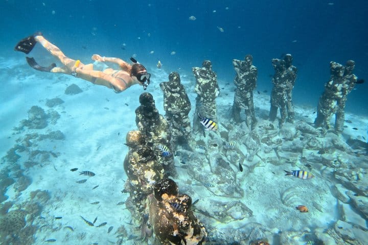 As the main activity in the island, Snorkeling is a must try. There will be 3 Snorkeling spots, Take in art by diving underwater to admire and swim among beautiful statues, Swim up close to sea turtles and marvel at these incredible animals and Immerse yourself in the marine life and colorful corals of the Gili Islands.